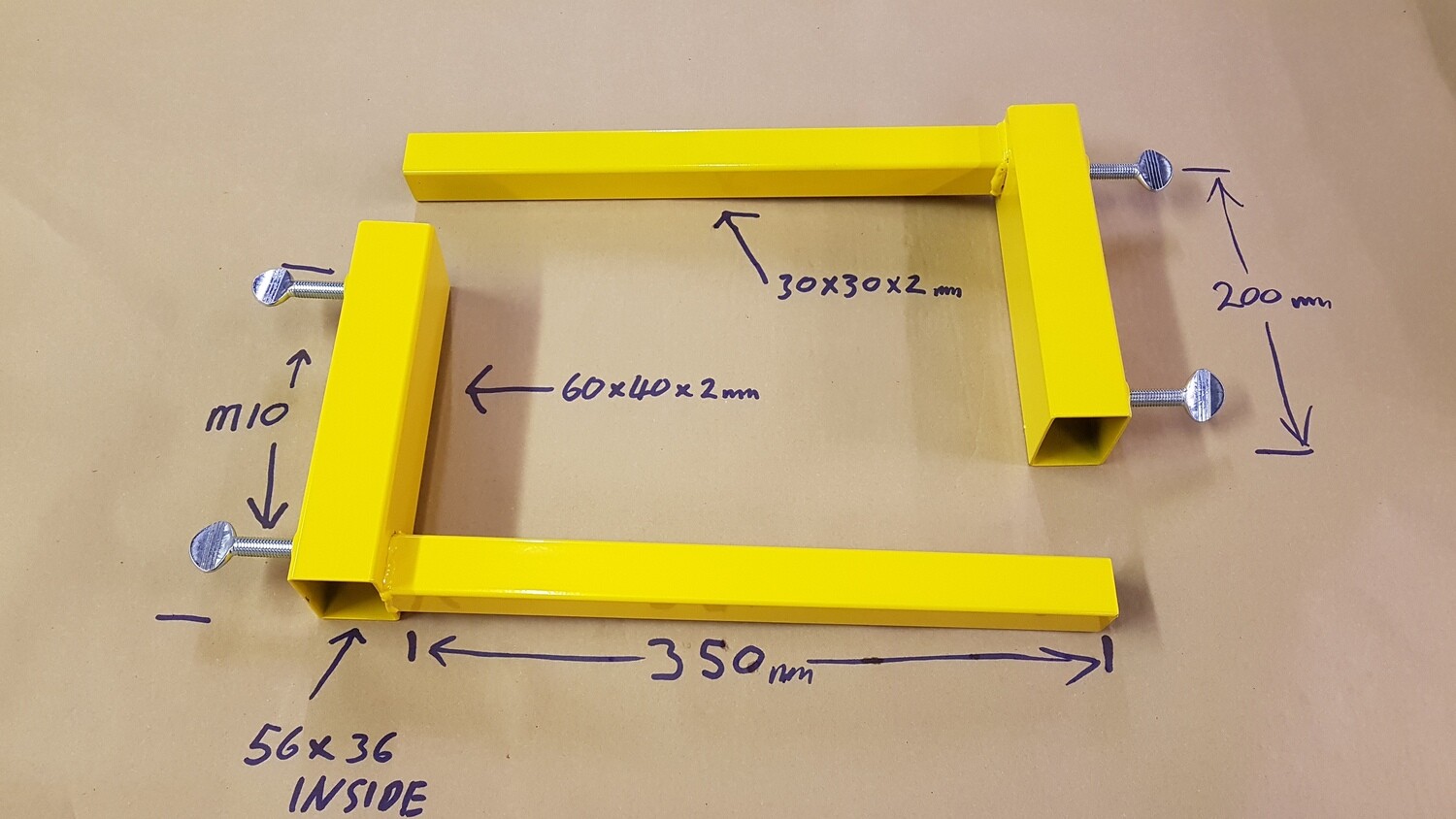 Gable Dolly's sold in pairs . Manufactured from 60mm x 40mm x 2mm box and 30mm x 30mm x 2mm box. 2 x M10 zinc plated thumb screws.